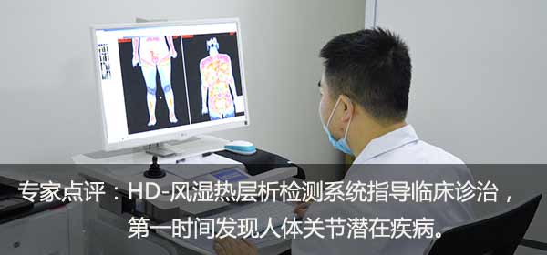 HD-热层析检测系统采用国际先进高分辨率遥感影像技术,以飞秒速度(千万亿分之一秒),通过TMT热成像系统的采集,对人体温度热场层层分析,无接触、无介入、0辐射、0创伤,有效检测各关节病灶部位、炎症性质和程度等,提前2年乃至更早发现关节病情,有助于临床高效防控及科学治疗风湿病。